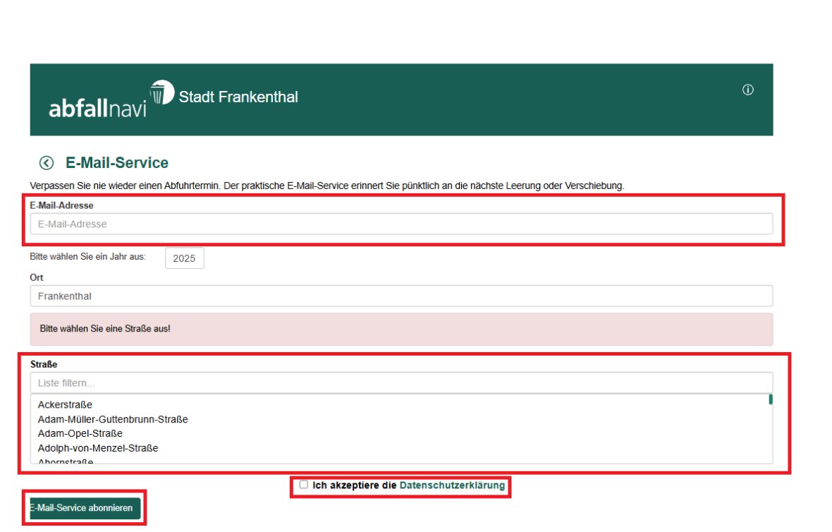Abfallkalender für Frankenthal
