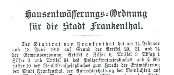 Der Eigen- und Wirtschaftsbetrieb Frankenthal – Bereich Stadtentwässerung – ist für eine geordnete Abwasserentsorgung im Stadtgebiet Frankenthal verantwortlich. Er baut, betreibt und unterhält die öffentlichen Abwasseranlagen und sorgt für eine regelmäßige Entleerung der Abwassergruben. Genehmigungen für die Einleitung von Abwässern in die öffentliche Kanalisation werden ausschließlich über den EWF von der Stadt erteilt.