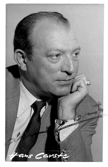 Geboren wurde Hans Carste 1909 in Frankenthal (Pfalz) als Sohn eines Diplomingenieurs. Aufgewachsen ist er im niederösterreichischen Marbach an der Donau und in Mährisch-Ostrau. Nach dem Abitur begann er 1927 in Wien das Studium der Stats- und Wirtschafts-wissenschaften, ehe er an die Musikakademie wechselte. Erste praktische Erfahrungen sammelte er an der Wiener Volksoper ehe er 1929 als Korepetitor an die Breslauer Oper wechselte. 1931 zog Carste nach Berlin wo er 1933 Mitglied der NSDAP wurde. In der Zeit vor dem 2. Weltkrieg schrieb er 24 Filmmusiken und zahlreiche Kabarettkompositionen. Mit der Plattenfirma Elektrola hatte er einen Exklusivvertrag geschlossen, dazu betrieb er eine Tanzkapelle unter seinem Namen.