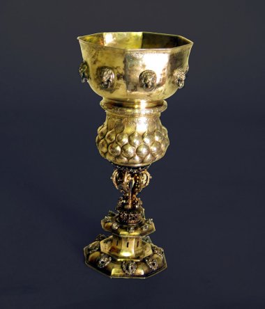 1609, Silber, gefertigt von einem Meister aus Frankenthal, der 29 cm hohe Pokal ist das älteste noch existierende Kultgerät aus der Wormser Gemeinde und eines der ältesten deutschen Judaica überhaupt.