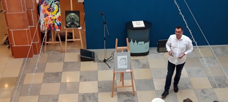 Bis zum 2. Juli zeigte das Erkenbert-Museum in der Ausstellung "Kunst für Bildung" in Kooperation mit der Frankenthaler Bildungsstiftung Werke von Schülerinnen und Schülern. Besucherinnen und Besucher hatten dabei die Möglichkeit, Stimmen für ihre Lieblingswerke abzugeben. Insgesamt hatte die Ausstellung 425 Besucher, davon rund 200 bei der Kunst- und Einkaufsnacht. 463 Stimmzettel wurden abgegeben.