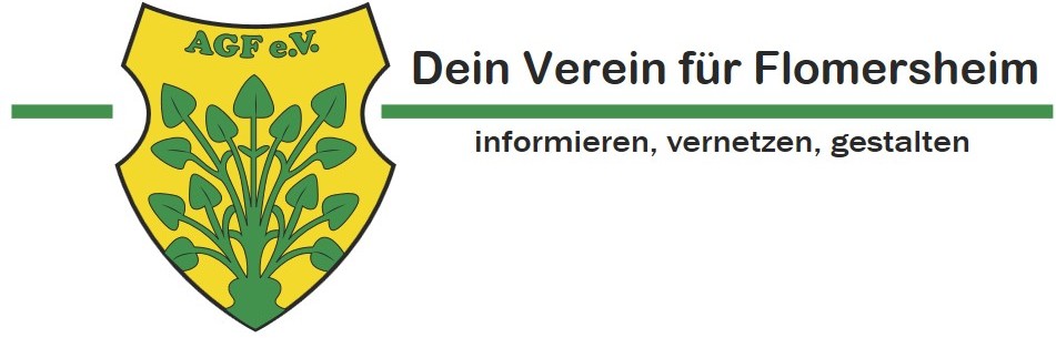 Dein Verein für Flomersheim - informieren, vernetzen, gestalten Die AGF ist der Verein für allem die bei uns im Ort etwas bewegen wollen, damit wir als Vorort attraktiv und lebenswert bleiben und die Gemeinschaft im Ort stärken. Jeder kann mitmachen - sprich uns einfach an. Die AGF ist Organisatior vieler lokaler Veranstaltungen in Flomersheim (z.B. Kerwe, Weihnachtsmark) und fördert die Kommunikation für Flomersheim (Website Flomersheim.de / Printmagazin "Vor Ort" / AGF Stammtisch "Hoschd schunn g'herd ?") und und und ...