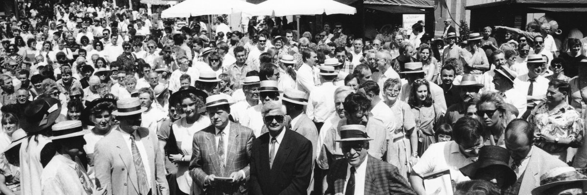Wir werden in der Zeit vom Donnerstag, dem 31.05.1973 (Christi Himmelfahrt), bis Samstag, dem 02.06.1973, die Innenstadt für den Kraftfahrzeugverkehr sperren, um einmal zu testen, unter welchen verkehrsmäßigen Bedingungen in der Innenstadt eine Fußgängerzone eingerichtet werden kann. Zusammen mit dem Frankenthaler Einzelhandel werden wir die gesperrte Zone durch verschiedene Attraktionen beleben. Auf dem Rathausplatz sind fünf Weinstände aufgebaut; das Frankenthaler Brauhaus ist dort mit einem Biergarten vertreten; zum Vergnügen der Kinder befindet sich auf der Verkehrsinsel vor der Commerzbank ein Karussell. An den drei Tagen wird ein reichhaltiges Musikprogramm für Unterhaltung sorgen. Einzelhandel, Gastwirtschaften, Cafes und Eisdielen sind aufgefordert, mit ihrem Angebot auf die Straße zu gehen.